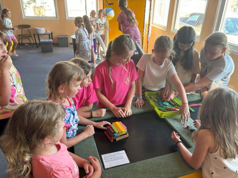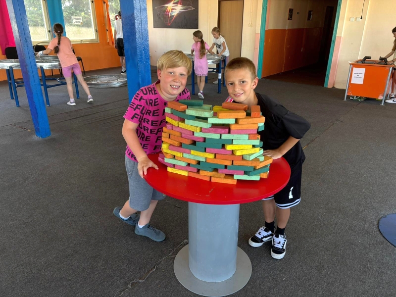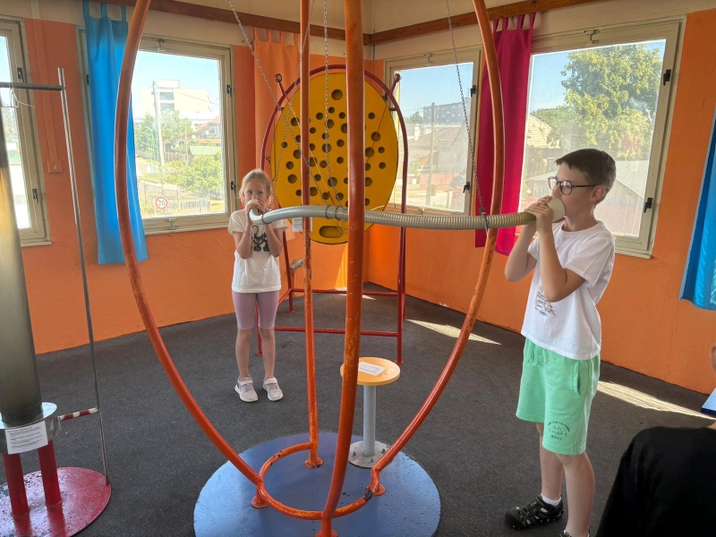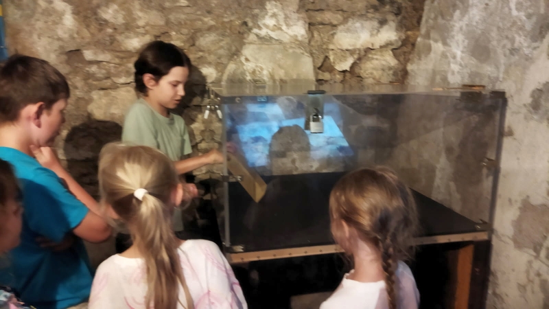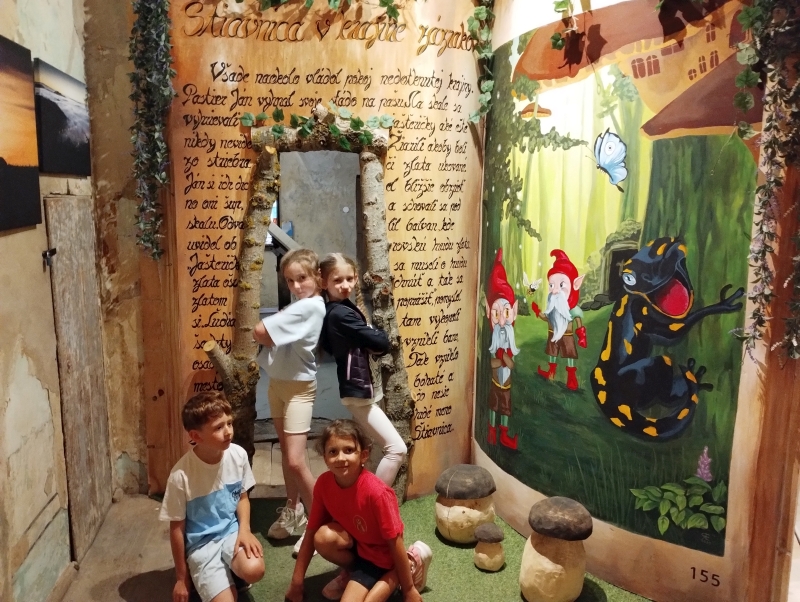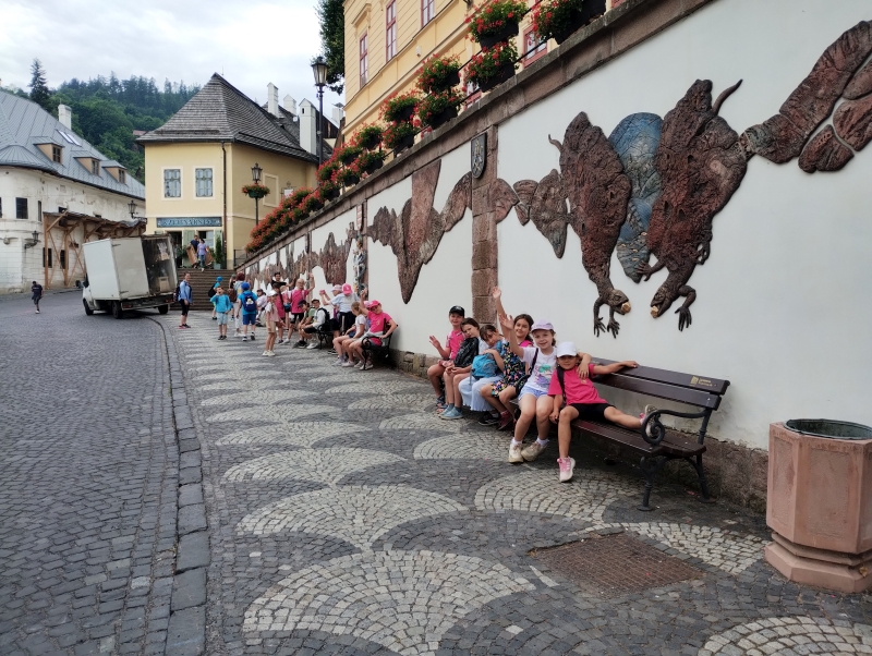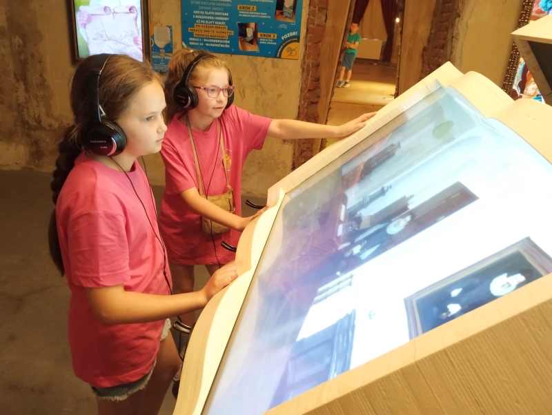 Posledný deň prázdninový vláčik zamieril do Banskej Štiavnice. Troška sa nám ochladilo a tak sme strávili príjemný čas v botanickej záhrade. Prešli sme námestím Banskej Štiavnice okolo starého zámku až sme sa ocitli pred kúzelným miestom, kde nás čakal interaktívny program s názvom Cesta v čase. Nevedeli sme čo očakávať, a tak plný nadšenia sme sa rozpŕchli po rôznych miestnostiach. Virtuálna realita – prelet na krídlach orla až k Spišskému hradu, zdvihák, rôzne zaujímavosti na interaktívnych tabuliach, zlatá tehlička (ktorú sa nám mimochodom podarilo vytiahnuť až 10x, a to vážila vyše 13kg), a cestovanie v čase virtuálnou realitou k prehistorickým dinosaurom, až po výbuch Štiavnického supervulkánu.