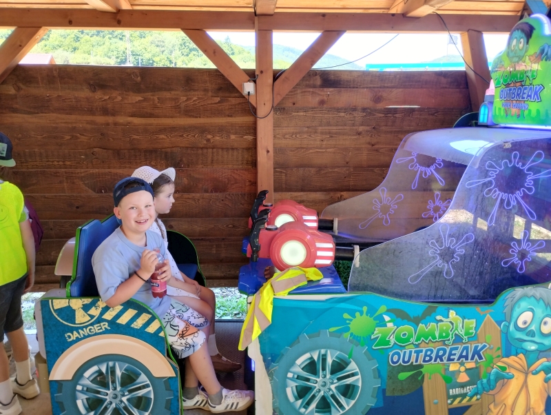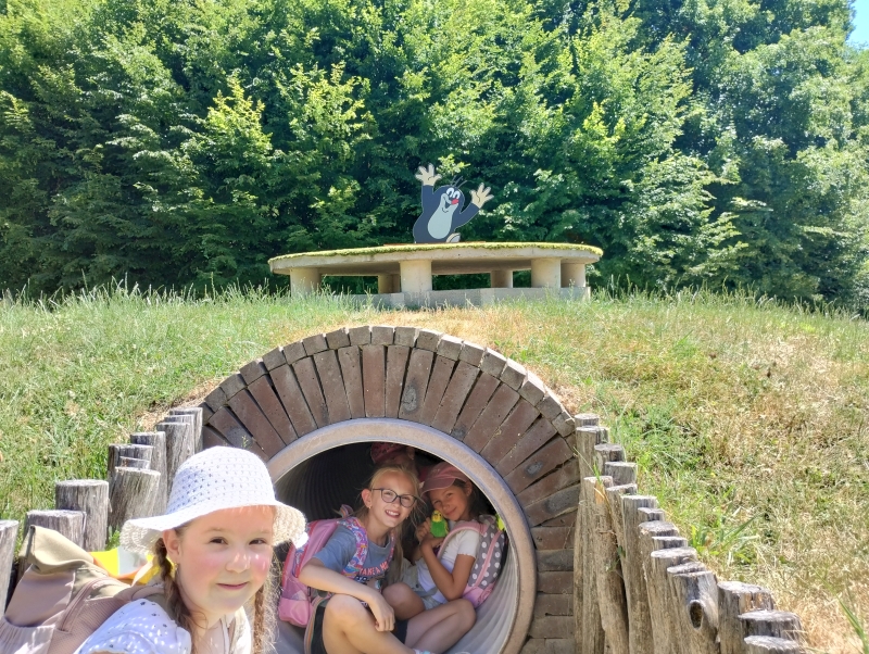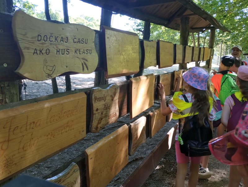 Štvrtý deň sa deti z ŠKD presunuli do Žarnovice. V Žarnovici nás čakala prehliadka Zveroparku. Náš výlet sme začali malých okruhom, hneď pri vstupe sa deti odvážili a tak zistili či vážia ako kozy kamerunské alebo ako medvedíky čistotné. Bolo to tak na polovicu. Presunuli sme sa krásnym prostredím okolo domácich zvierat, jazera, a našli sme bludisko. Ďalej sme sa presunuli na rozprávkovú cestu, našli krtkov domček, a kopec iných rozprávkových bytostí. Na záver sme vyšli strmým chodníčkom ku skákacím hradom. Slniečko riadne pálilo, ale to nás neodradilo sa poriadne vyšantiť, zaskákať si a poriadne si užiť dnešný deň.