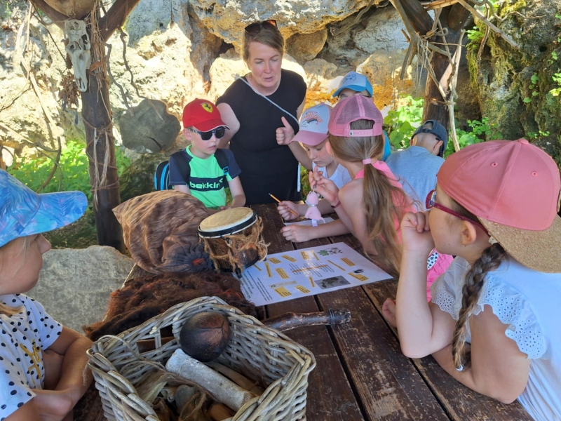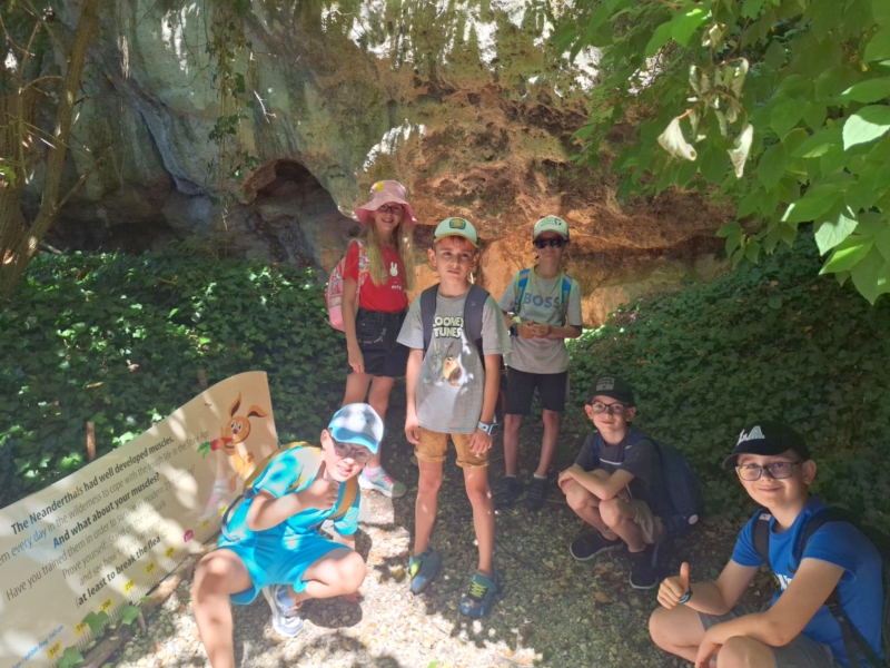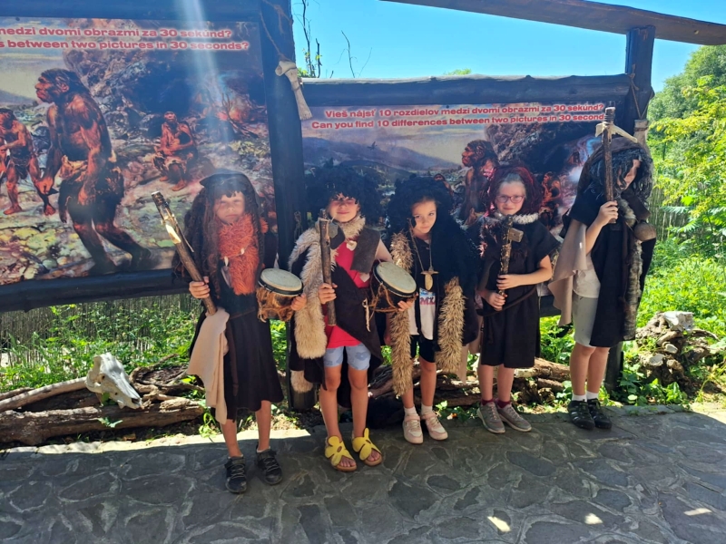 Druhý prázdninový deň sa deťúrence z ŠKD vrátili do dávnych dôb histórie nášho ľudského rodu. Objavovali tajomnú dobu pravekých neandertálcov. V originálnej pravekej dielni riešili zaujímavú tajničku, obliekali praveké oblečenie, či tancovali šamanský tanec. Ako bolo? Aj keď slniečko pripekalo, hotová paráda! A čo by ešte k takému výletu chýbalo? No predsa dobré jedlo od maminky a samozrejme nakupovanie všelijakých suvenírov.