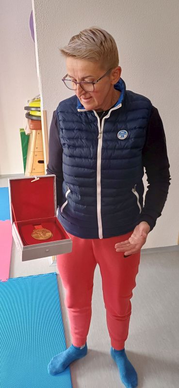 Na záver si žiaci mohli pozrieť aj zlatú olympijskú medailu, ktorú získala na olympijských hrách v Pekingu 2008.