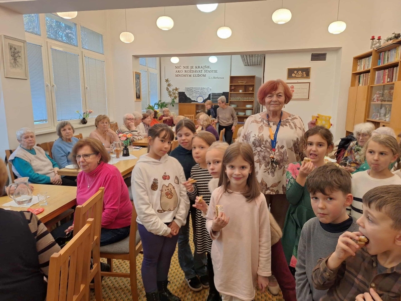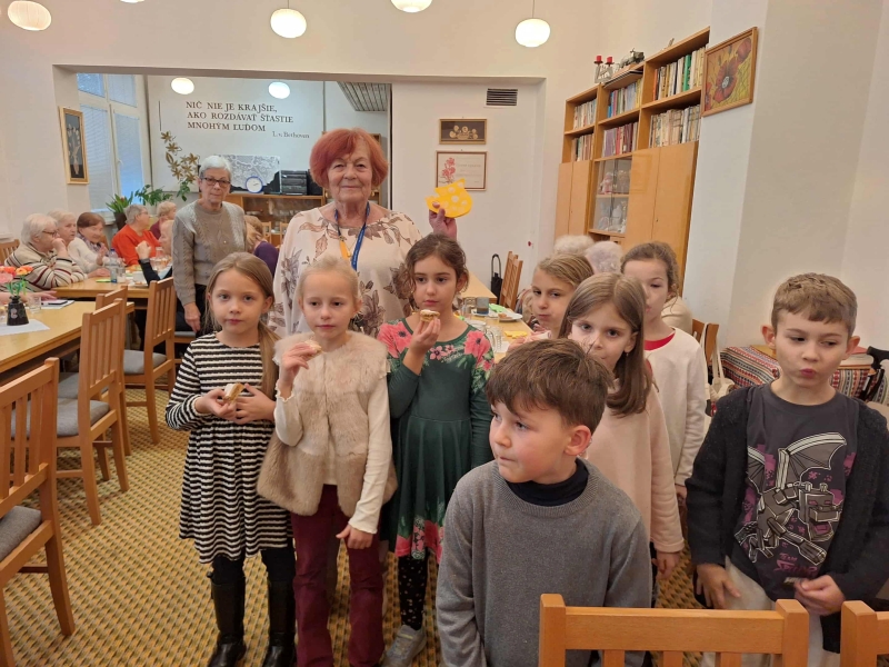 Navštívili sme Klub dôchodcov IV., kde sme sa preniesli do spomienok, ktoré nás obklopujú. Starkým sme zaspievali, zarecitovali, a priniesli malý darček, ktorú im vyčaril úsmev na tvári.