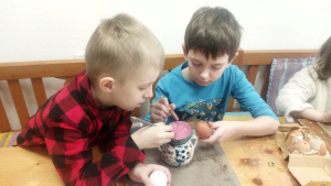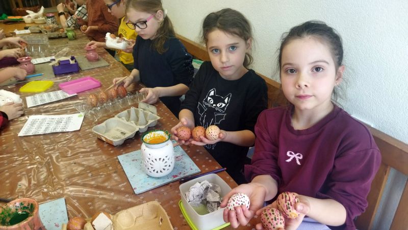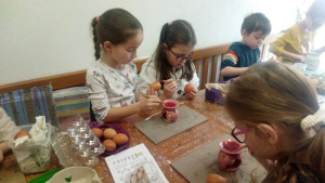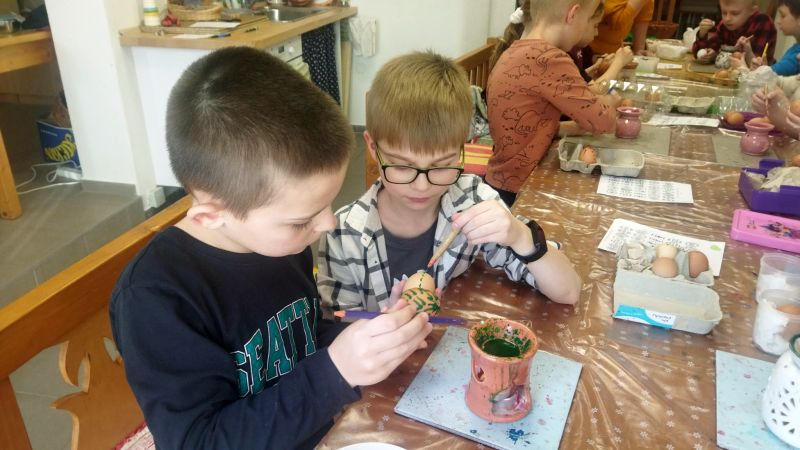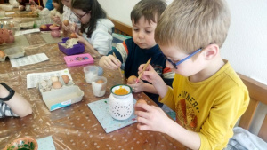 V POS sme si vyskúšali tradičnú techniku zdobenia a spoločne sme vyrábali krásne batikované vajíčka. Deti sa s trpezlivosťou učili nanášať vosk a postupne odkrývať pestrofarebné vzory, ktoré vznikali pod ich rukami. Tieto vlastnoručne vyrobené kraslice nám teraz robia radosť a dotvárajú pravú veľkonočnú atmosféru.